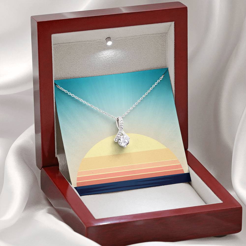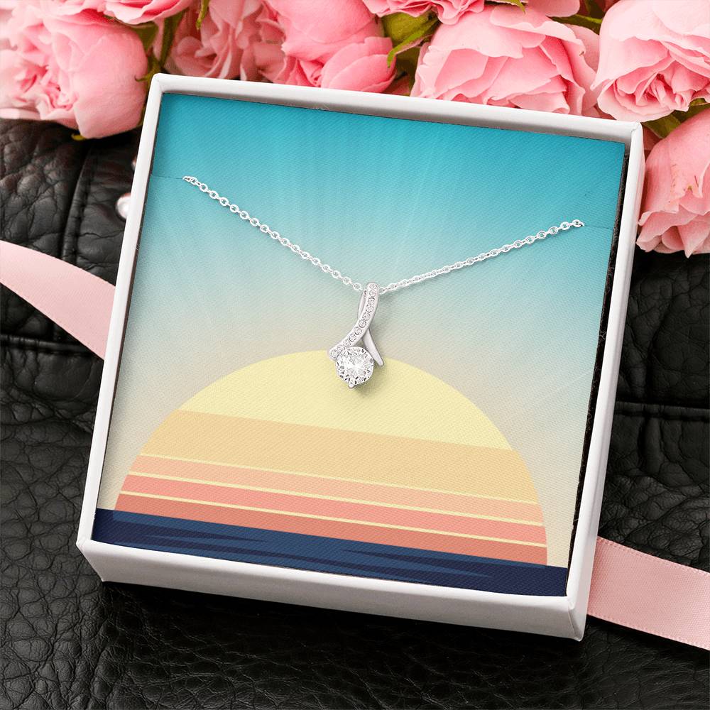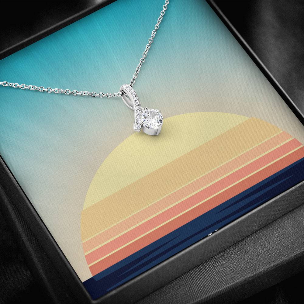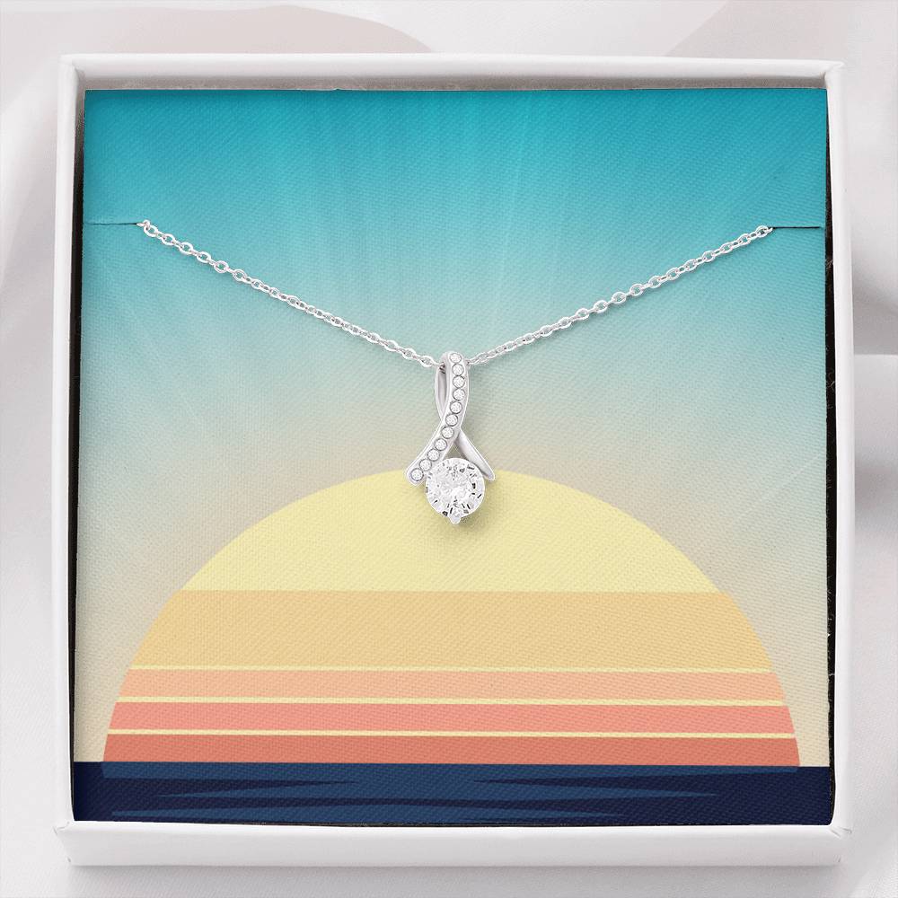 Melt her heart with this ALLURING BEAUTY necklace gift! The petite ribbon shaped pendant is finished with 14K white gold over stainless steel, and is embellished with dainty clear crystals surrounded by a sparkling 7mm round cut Cubic Zirconia.