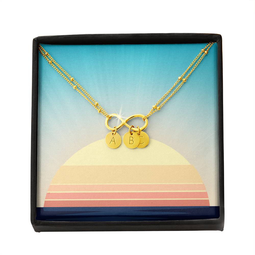 Our Infinity Bracelets are dipped in 18K yellow gold. The shimmering charms feature a modern, readable font style from A-Z or 0-9 (zero through nine). The adjustable satellite chain fits most wrist sizes, measuring 7" - 9" in length (17.78 cm - 22.86 cm).