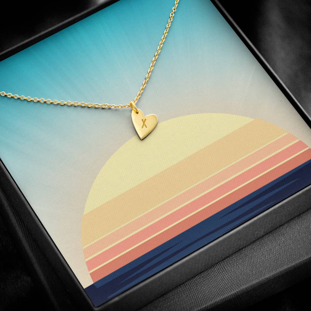 This sweet and dainty necklace is a special way to make her feel loved! Imagine the look on her face when she sees the darling asymmetrical hearts with personalized hand-stamped letters on the face of the charms.