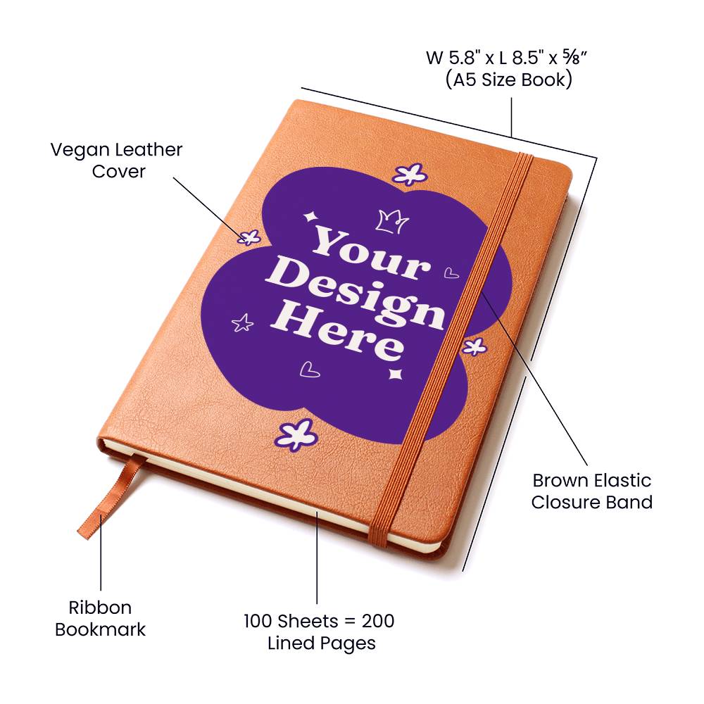 What better way to quiet your racing mind than with a clean slate? The Graphic Leather Journal is the perfect accessory for personal reminders, goal setting, or just getting organized. This vegan leather notebook allows you to write on the go thanks to its lightweight design. Plus, swapping between your important pages is easy thanks to the ribbon bookmark and elastic closure band. The unique front is professionally printed with vibrant colors - making your design last as long as your to-do list!