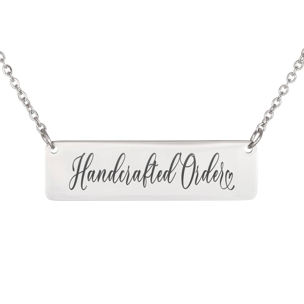 Each side of the engraved bar necklace is attached to a 16-22 inch fully adjustable cable chain.