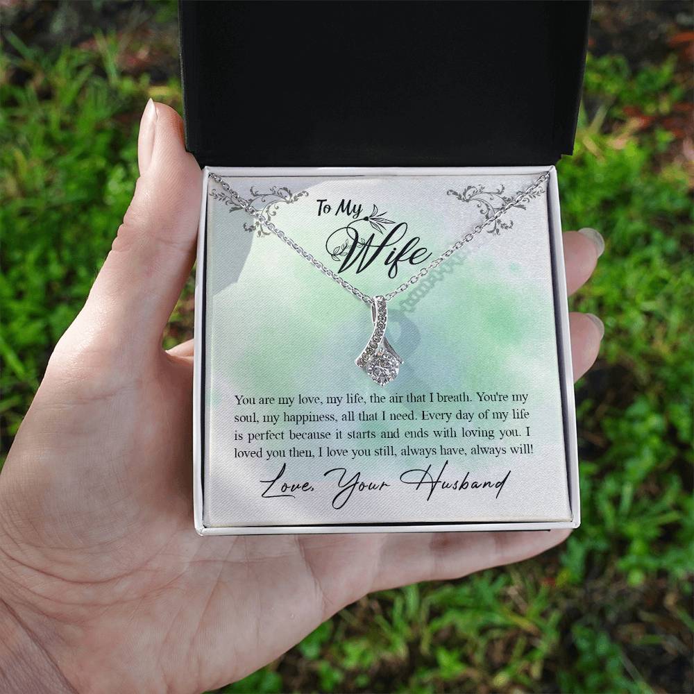 Imagine her reaction when she opens this stunning gift! The Alluring Beauty necklace features a petite ribbon shaped pendant that is sure to dazzle your special someone. Whether it's a birthday or anniversary, make sure to get her a gift she will love for years to come.