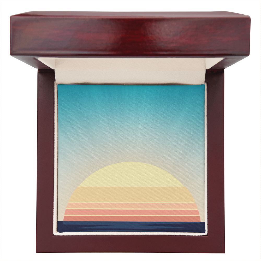 Your piece is lovingly packaged in a complimentary soft touch box for easy gifting. Elevate your presentation by upgrading to the mahogany style luxury box, which features a brilliant LED spotlight.