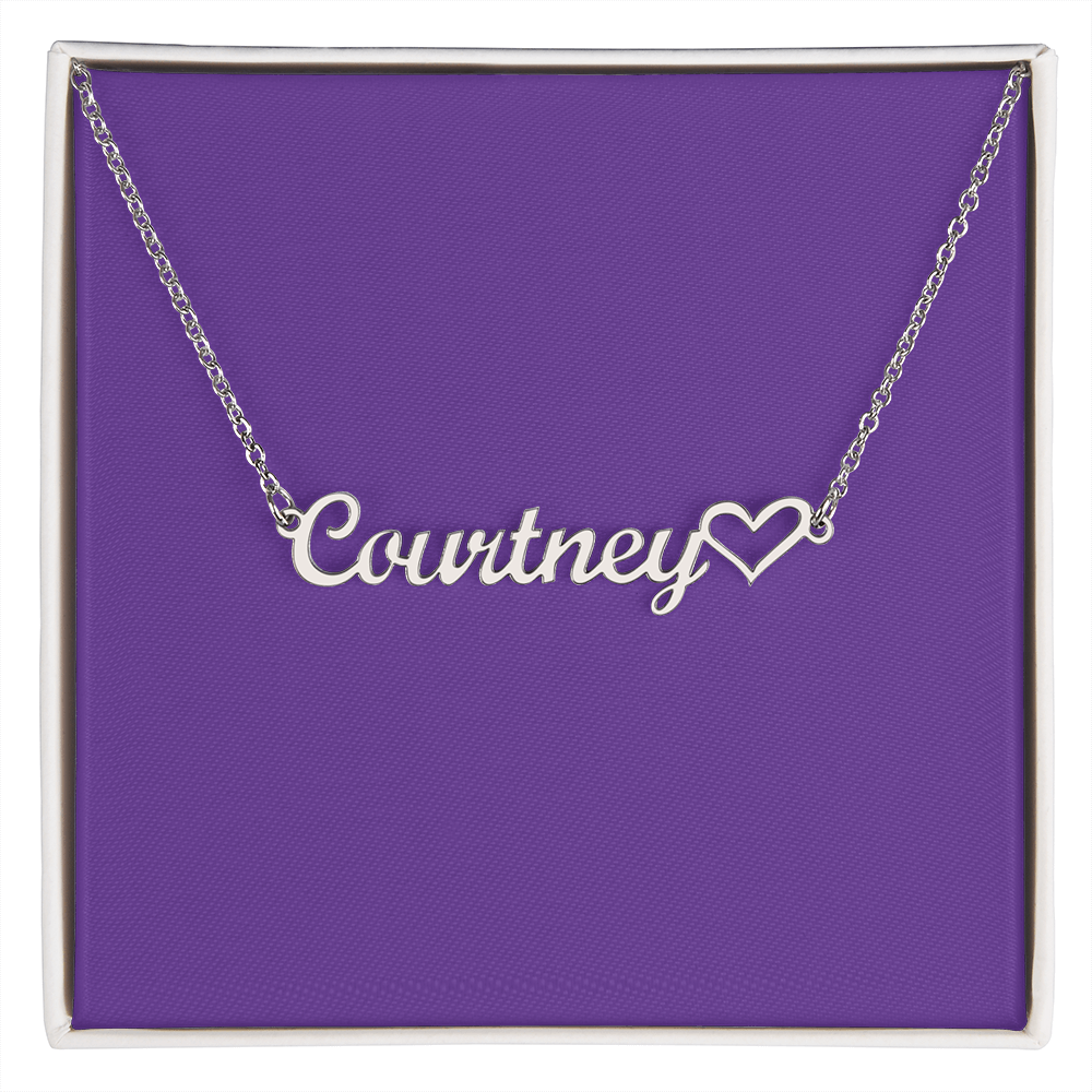 This stylish necklace features a cursive name design and heart symbol suspended on a 16”-18” adjustable cable chain, making it both personal and beautiful! Your necklace will be custom made upon ordering in the name or word of your choice, with up to 10 characters. It's a gift they will surely want to keep close to their heart forever!
