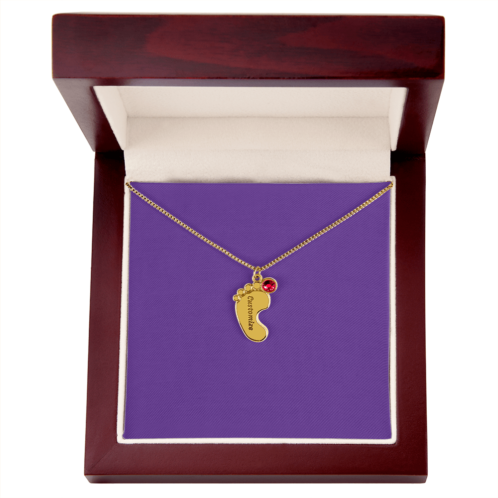Celebrate the arrival of a newborn or cherish a precious memory with our Custom Baby Feet Necklace with Birthstone. Personalize your gift by engraving a name of your choice onto the pendant and choosing a crystal that correlates with the baby's birth month. And by picking multiple pendants, a custom present like this is perfect for moms and grandmothers with big families. This is a one-of-a-kind keepsake that will be treasured for a lifetime!