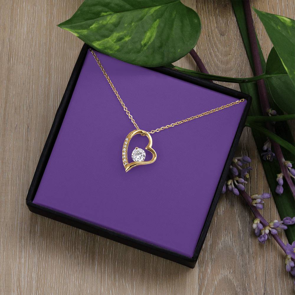 The dazzling Forever Love Necklace is sure to make her heart melt! This necklace features a stunning 6.5mm CZ crystal surrounded by a polished heart pendant embellished with smaller crystals to add extra sparkle and shine. Beautifully crafted with either a white gold or yellow gold finish, be sure to give her a classic gift she can enjoy everyday.
