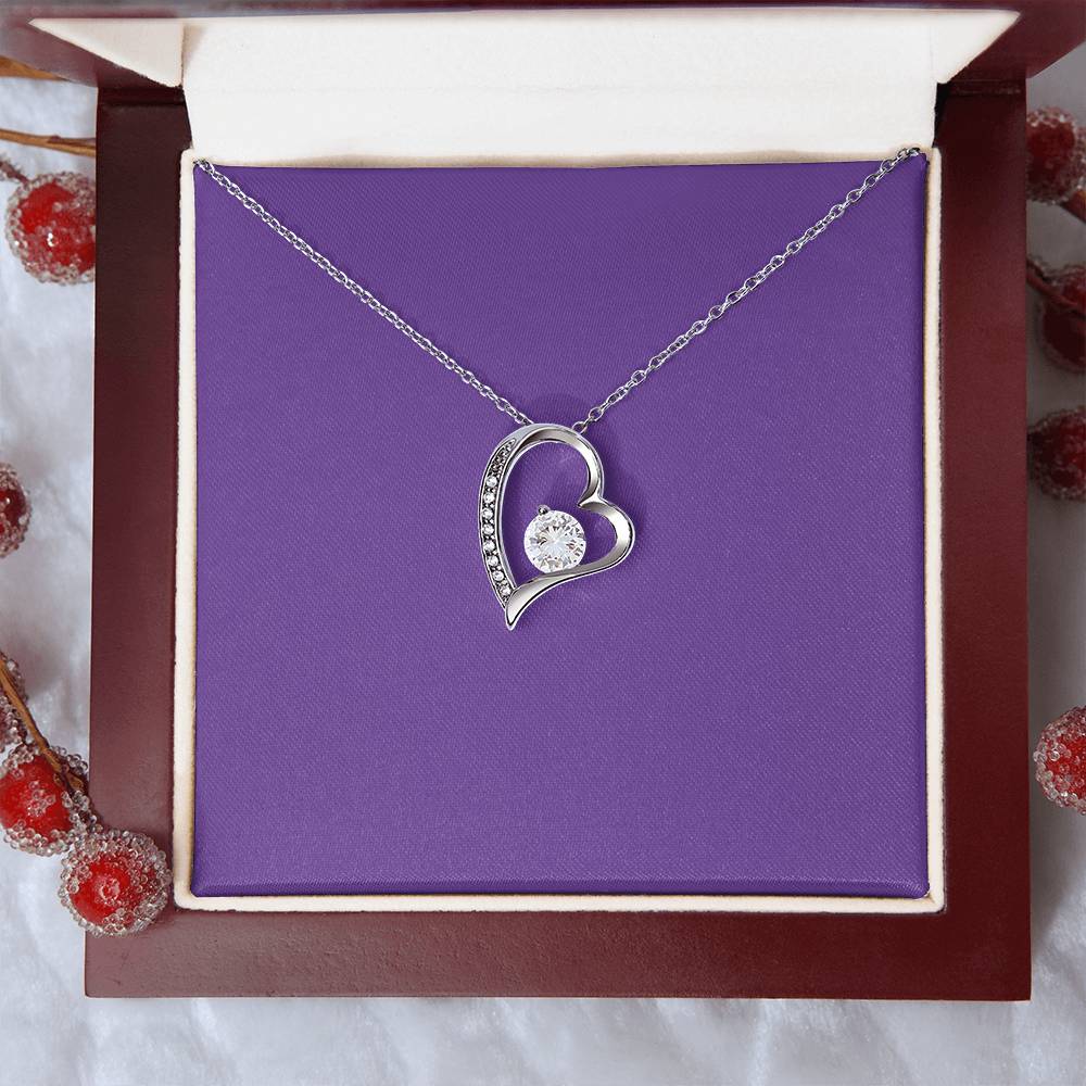 The dazzling Forever Love Necklace is sure to make her heart melt! This necklace features a stunning 6.5mm CZ crystal surrounded by a polished heart pendant embellished with smaller crystals to add extra sparkle and shine. Beautifully crafted with either a white gold or yellow gold finish, be sure to give her a classic gift she can enjoy everyday.