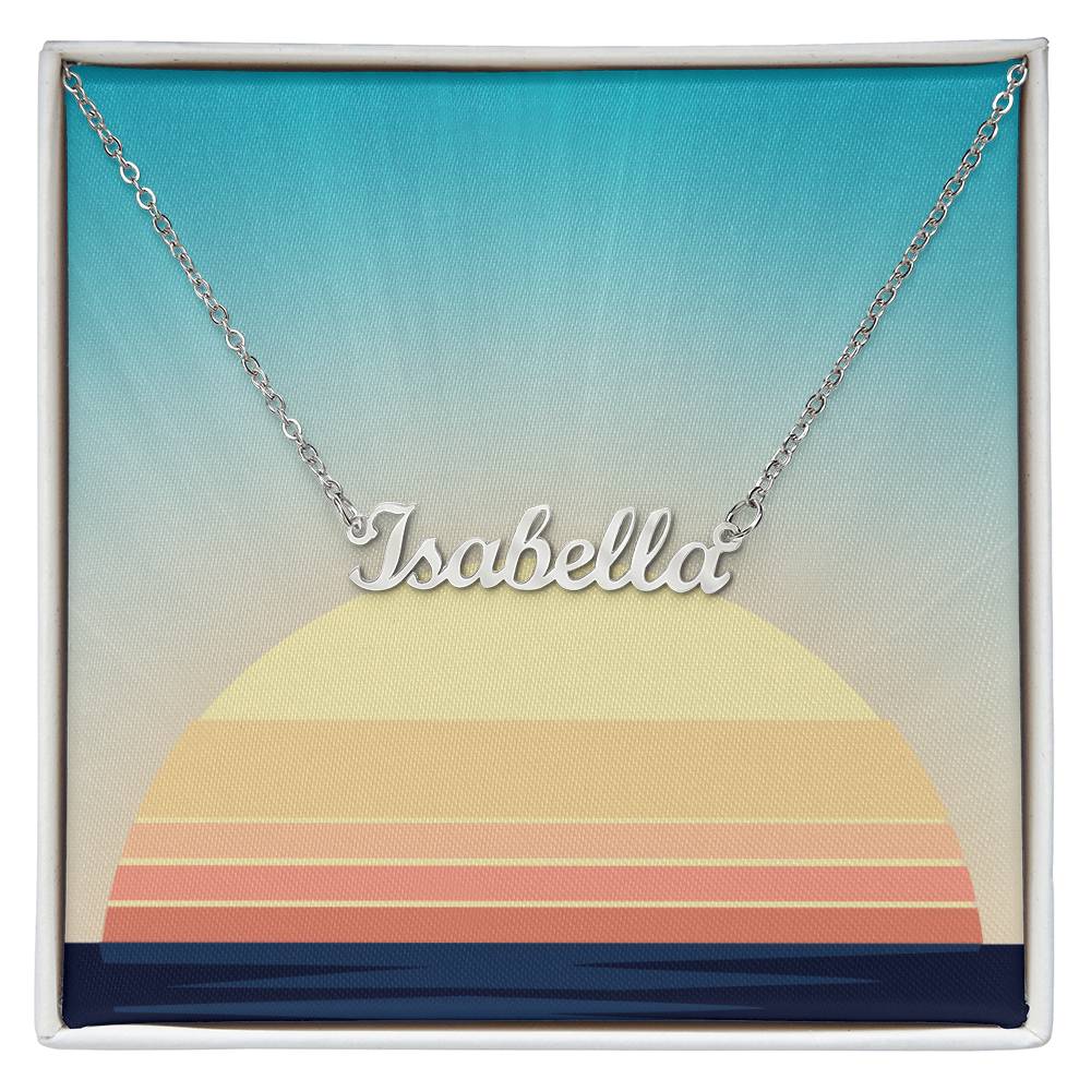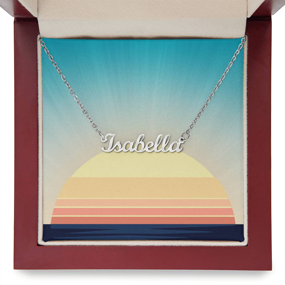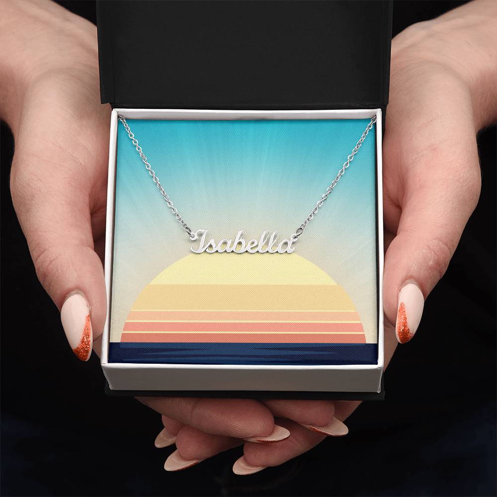 This stylish necklace features a cursive name design suspended on an 16”-18” adjustable cable chain, making it both personal and beautiful! Your necklace will be custom made upon ordering in the name or word of your choice, with up to 10 characters. It's a gift that they will surely want to keep close to their heart forever!